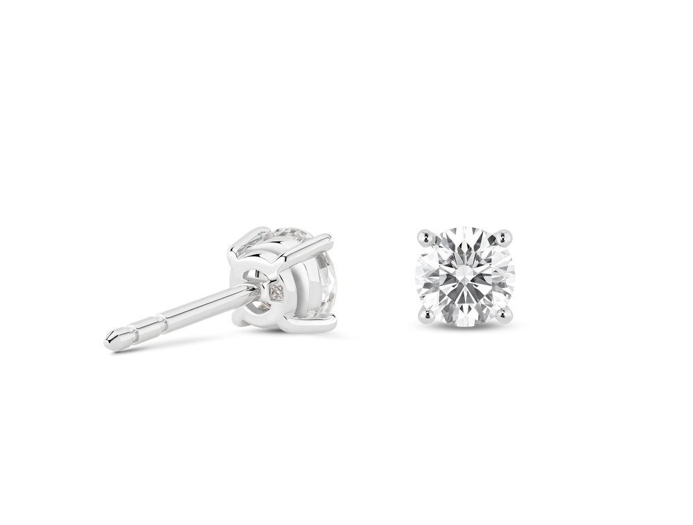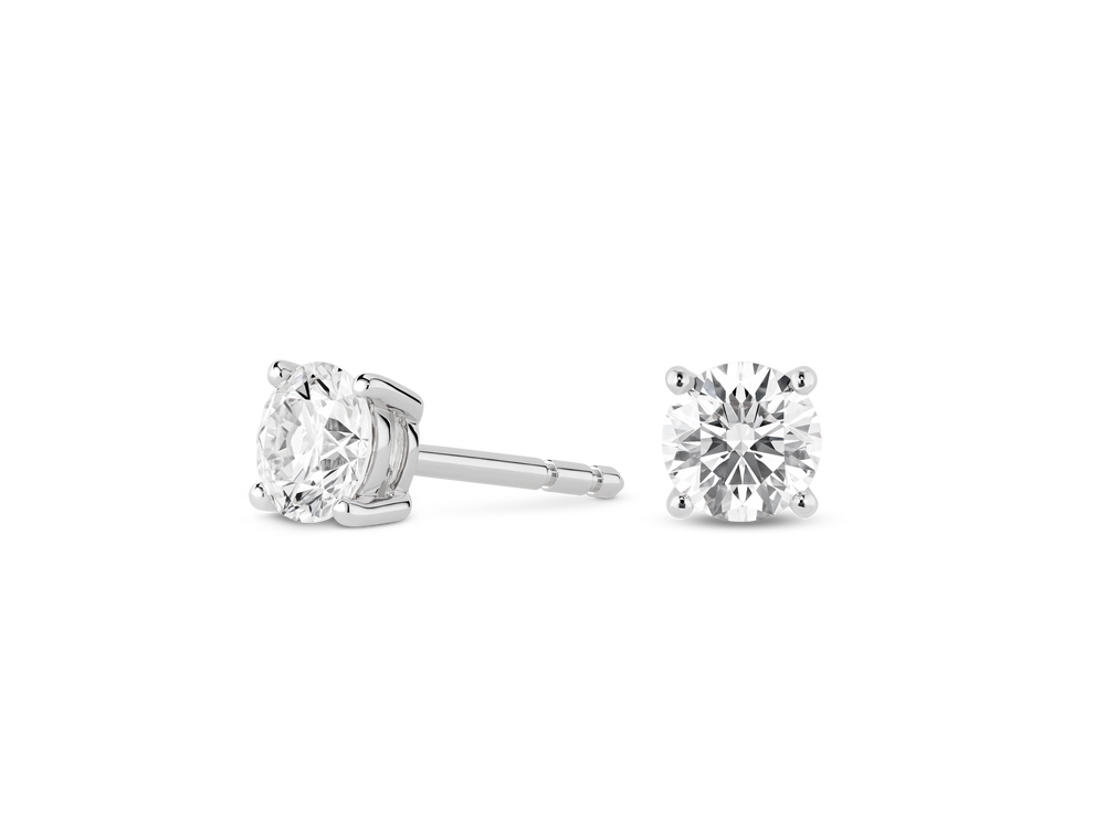 With each ½ carat round brilliant solitaire stud held in a 18k white gold basket setting, these earrings are the perfect accessory to elevate any outfit -- whether you’re dressing up for a special occasion or just keeping it casual. Each Finest lab-grown stone is VVS+ clarity*, Excellent cut and Colorless D, E, F, guaranteeing a stunning sparkle that needs to be seen to be believed.