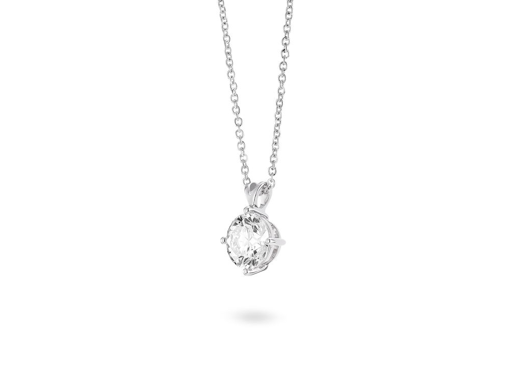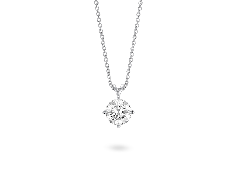 Add some serious sparkle to your jewelry collection with our new 2 carat Finest pendant. Each of our Finest stones are VVS+ clarity, Excellent Cut, Colorless D, E, F and set in 18k gold. The 2 carat stone is held within a four prong setting on a bale pendant.